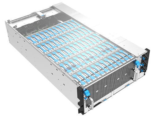 小身材大容量:采用创新型解决方案更大限度提升存储容量密度,仅需4U空间,机箱深度仅为800mm(可适配1m深机柜),提供60个3.5英寸硬盘,存储容量高达1080TB(单盘18TB)